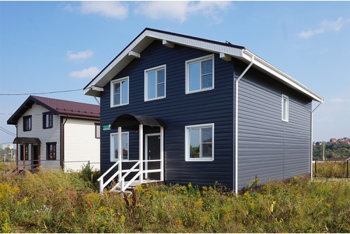 - В отличие от облицовки фасада деревом, металлический сайдинг «ЭкоБрус GL» прост в монтаже и не требует дополнительного послемонтажного ухода.