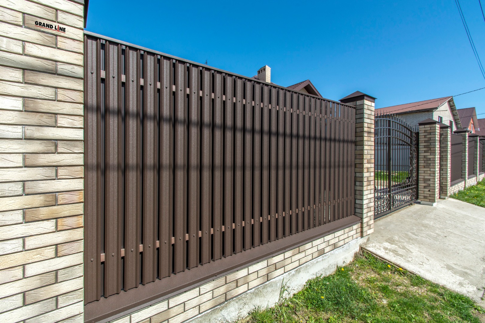 Металлический штакетник — это тип ограждения, состоящий из металлических панелей шириной 100-128 мм и имеющих различные варианты профиля. Изготавливается из оцинкованной стали с полимерным покрытием. Толщина листа может достигать 0,5 мм. Наличие цинка и полимерного покрытия обеспечивают защиту металла от агрессивного воздействия внешней среды.
