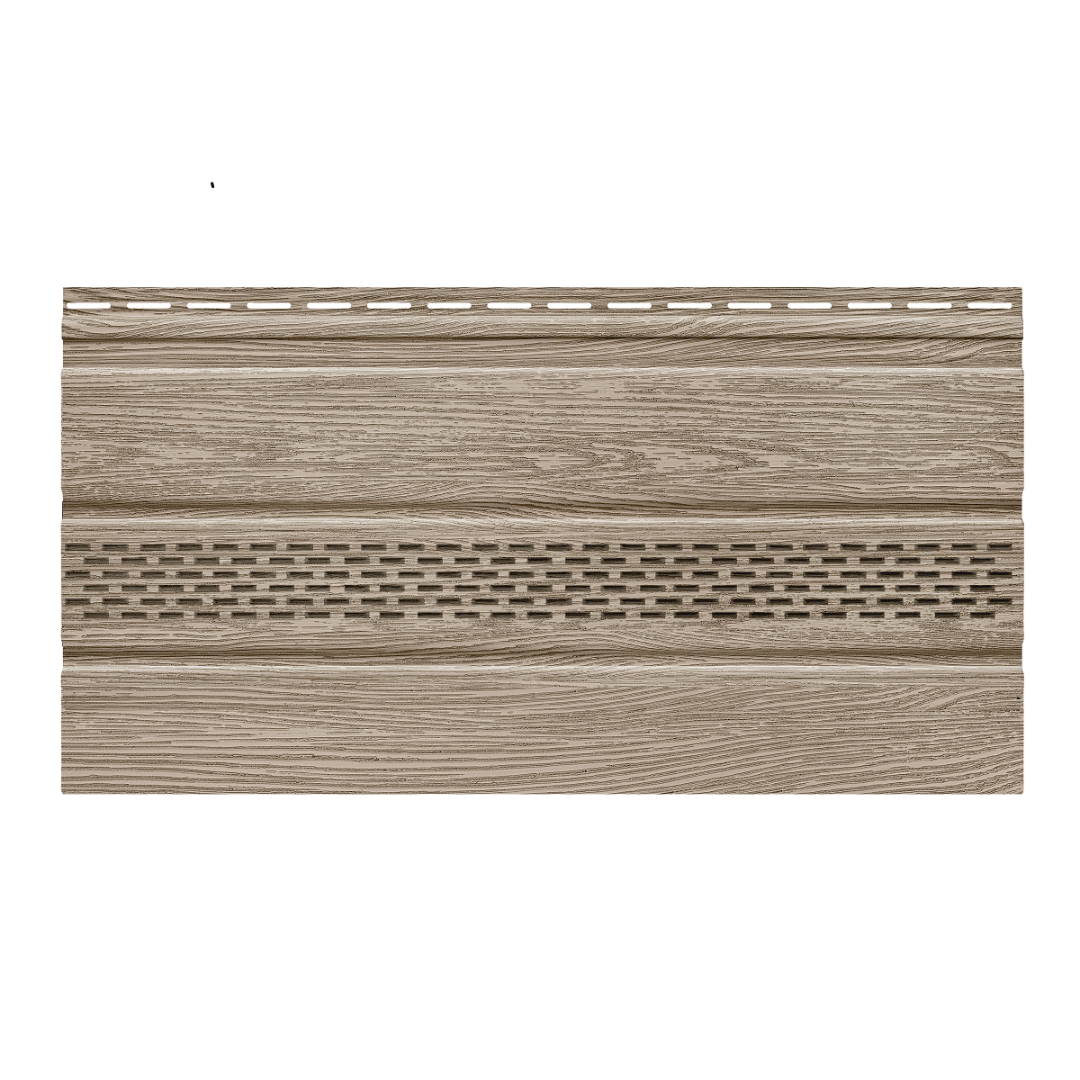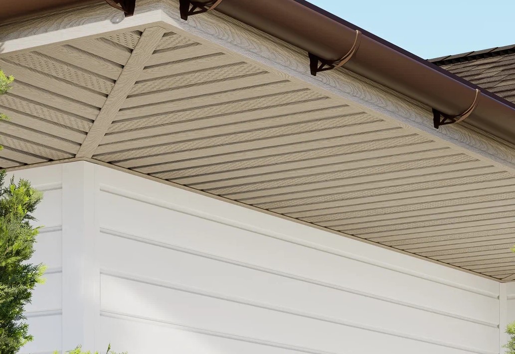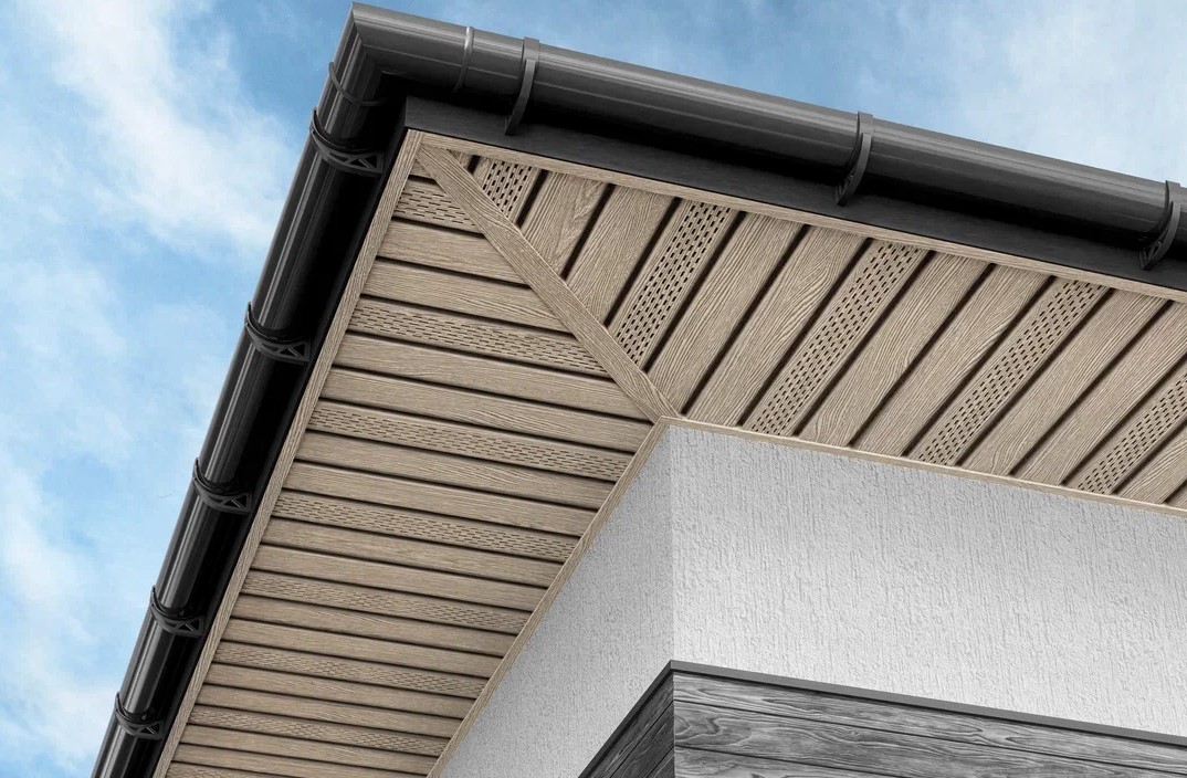 Помимо функций защиты и вентиляции, софиты помогают завершить внешний вид здания, скрывая места перехода от вертикальных поверхностей к горизонтальным. Полуматовая поверхность и текстура софитов реалистично имитируют натуральное дерево.