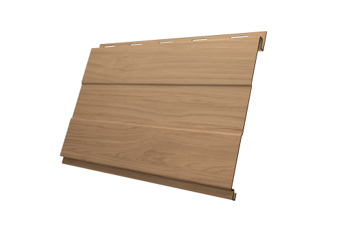 - Универсальность использования: может использоваться в качестве софитов для подшивки карнизных и фронтонных свесов, цокольного сайдинга и классического использования на фасаде. Оригинальность достигается за счет вертикального крепления панелей. Сочетание сайдинга Вертикаль с горизонтальным сайдингом может стать интересным дизайнерским решением. Надежное скрытое сцепление панелей придает фасаду здания естественный вид.
